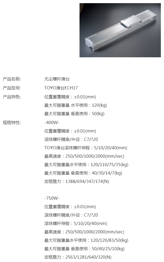 TOYO無塵螺桿滑臺ECH17