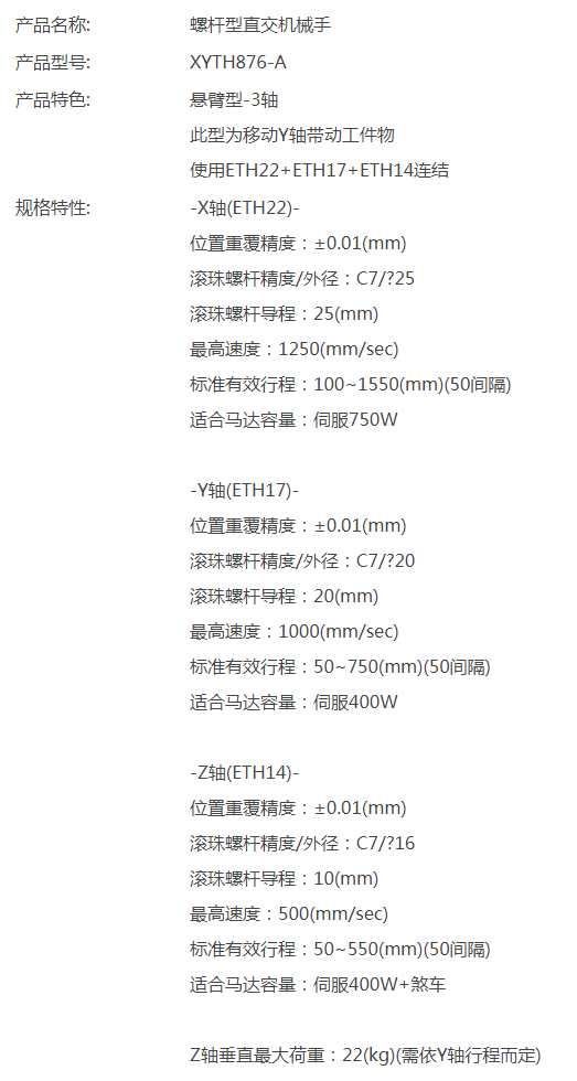 TOYO螺桿型直交機械手XYTH876-A