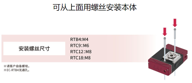 可實現(xiàn)無沖擊的平穩(wěn)停止 可從上面用螺絲安裝本體 小尺寸旋轉型 EC-RTB4