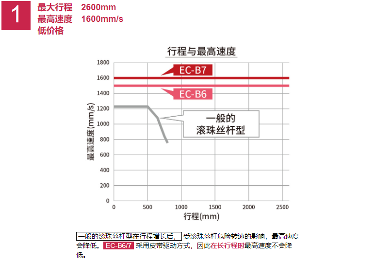 EC-B6/B7同步帶驅(qū)動型。 1.最大行程2600mm,最高速度1600mm/s,低價格