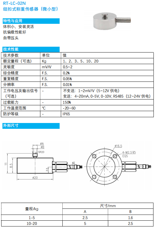 RT-LC-02N 紐扣式稱重傳感器(微小型)